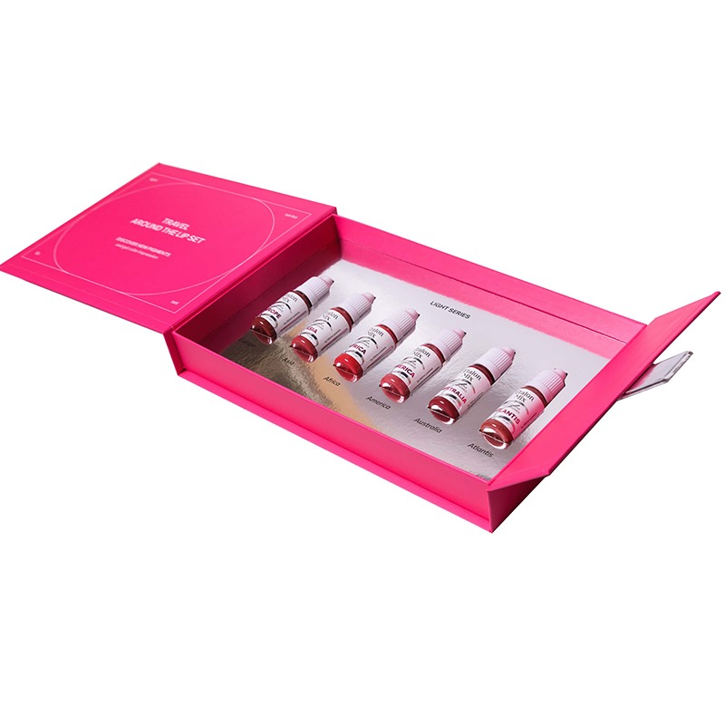 Ce coffret complet contient les sept teintes hybrides pour les lèvres Etalon Mix, conçues pour un résultat doux, éclatant et naturellement réparateur. Les pigments sont entièrement conformes à la réglementation REACH, extrêmement stables et parfaitement adaptés à toutes les techniques de maquillage des lèvres : lèvres aquarelle, lèvres pixel, lèvres velours et ombrage complet. Le coffret est disponible dans un luxueux étui magnétique avec des flacons de 5 ml ou en format 15 ml sans étui magnétique.